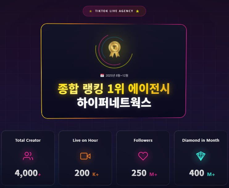 틱톡코리아 에이전시 평가 1위 했다고 해요.